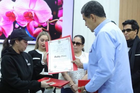 La hija del músico, Zulinka Pérez, fue quien recibió los honores en representación de su padre. «Aquí está el documento de la orden, es un homenaje a Rubby y te coloco a ti la Orden del maestro José Antonio Abreu, el más grande músico, constructor del Sistema de Orquestas», indicó el mandatario venezolano a Zulinka.