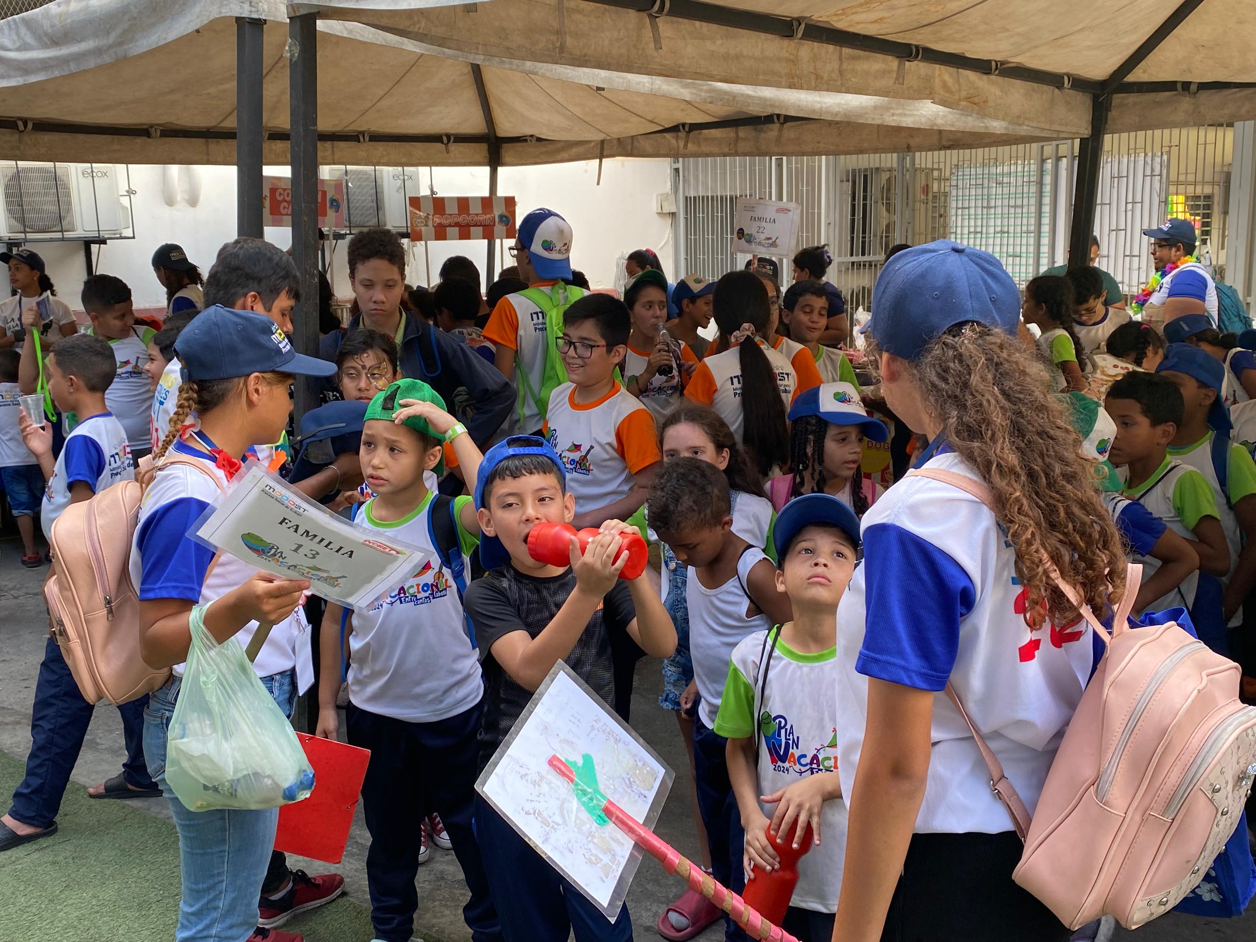 Los niños y niñas de El Plan Vacacional ‘’Entre Cantos y Labores’’, disfrutaron el cierre de esta semana vacacional, bajo una serie de actividades que les permitieron aprovechar su tiempo libre con la presentación de una obra teatral en los espacios del teatro “José Chino Khan” del Instituto Nacional de Capacitación y Recreación de los Trabajadores.
