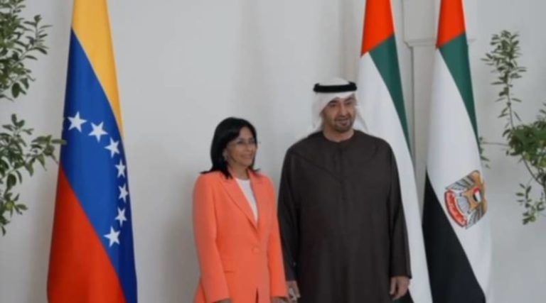 La vicepresidenta Ejecutiva de la República, Delcy Rodríguez, sostuvo una reunión de trabajo con el presidente de los Emiratos Árabes Unidos, el Jeque Mohammed bin Zayed Al Nahyan, con quien reviso las relaciones bilaterales que mantienen ambas naciones con el objetivo de examinar los sectores donde pueda haber un desarrollo común.
